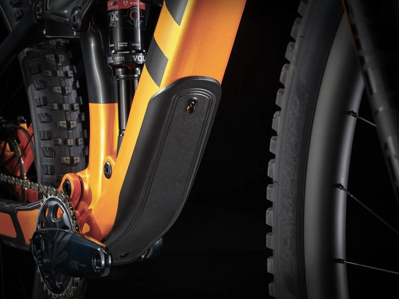 Fox Performance Float EVOL, RE:aktiv med Thru Shaft 3-lägesdämpare, inställd av Trek Suspension Lab, 210 x 55 mm - Lukittava takajousitus?